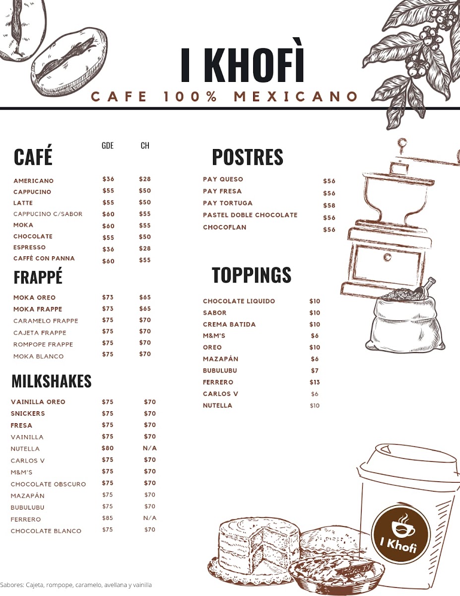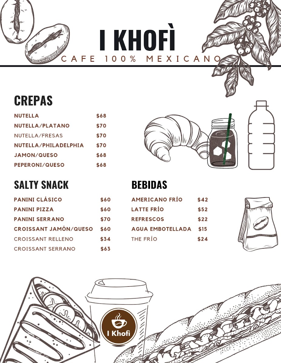 Welcome to I khofì, a delightful café nestled in the heart of Reynosa. Here, the aroma of gourmet coffee fills the air, complemented by a diverse menu that caters to all cravings. Whether you're stopping by for a quick frappé or indulging in their tempting selection of crepes, there's something for everyone.